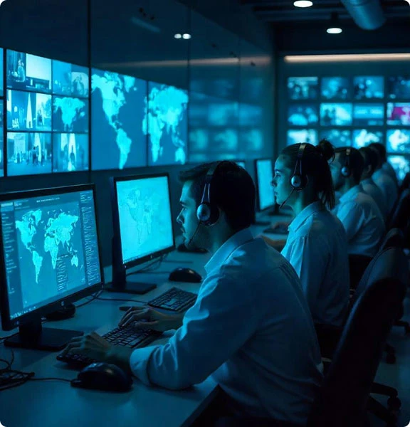 Naš dežurni operativni centar radi 24/7/365 i predstavlja ključnu tačku za stalni nadzor i brzu reakciju. U njemu se u realnom vremenu prate sistemi video nadzora, alarmni i vatrodojavni sistemi, kontrola pristupa, specijalizovana oprema i tehnička infrastruktura. Kroz savremenu tehnologiju i obučen kadar, osiguravamo kontinuiranu sigurnost, analiziramo podatke i intervenišemo u slučaju prijetnji, kvarova ili hitnih situacija.