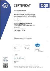 ISO 9001 – Sistem upravljanja kvalitetom, koji garantuje dosljednost u procesima, proizvode i usluge visokog kvaliteta te stalno unapređenje.